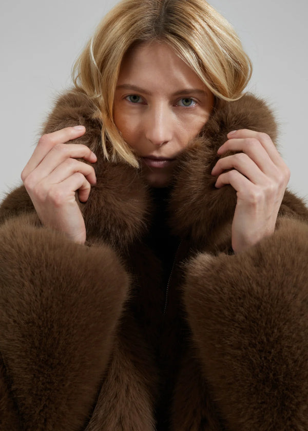 The product features high-quality faux fur imported from Italy, designed to feel soft, glossy, and luxurious.
